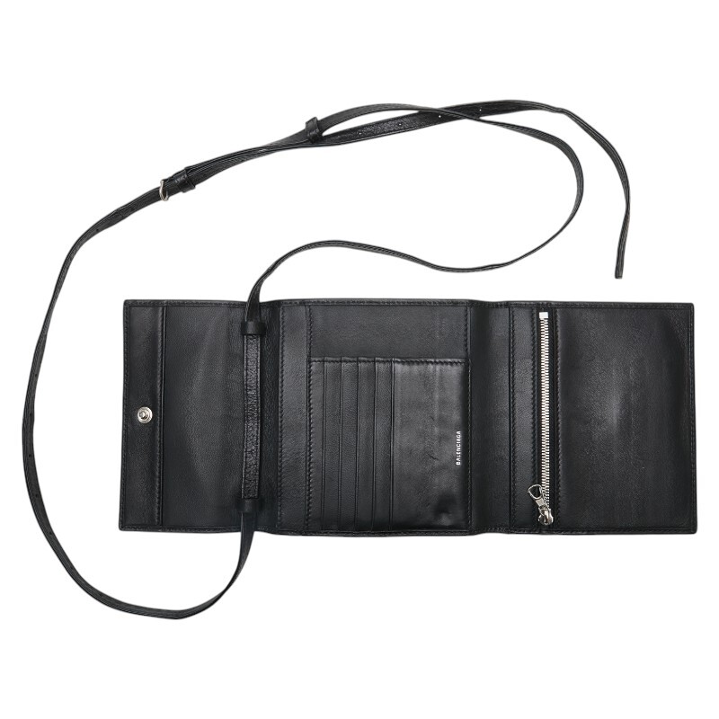 バレンシアガ Bロゴ 三つ折り财布 580037 ブラック レザー メンズ BALENCIAGA 【中古】