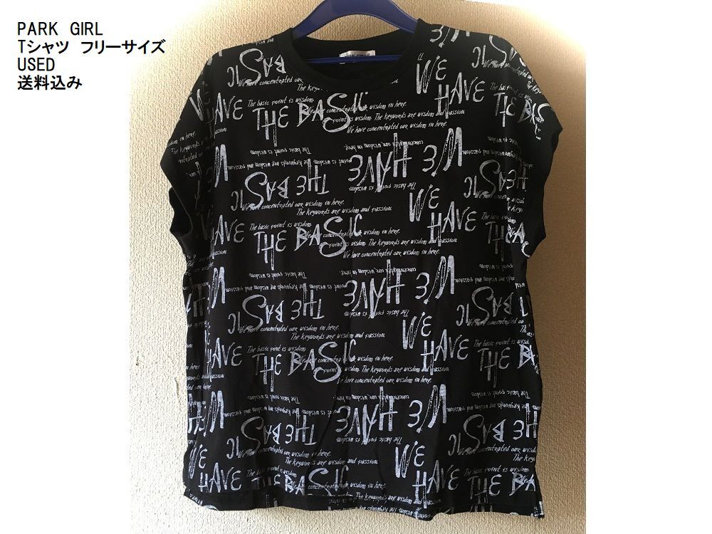 PARK GIRL Tシャツ フレンチ袖 フリーサイズ USED 送料込み 黒 アルファベット 英字柄