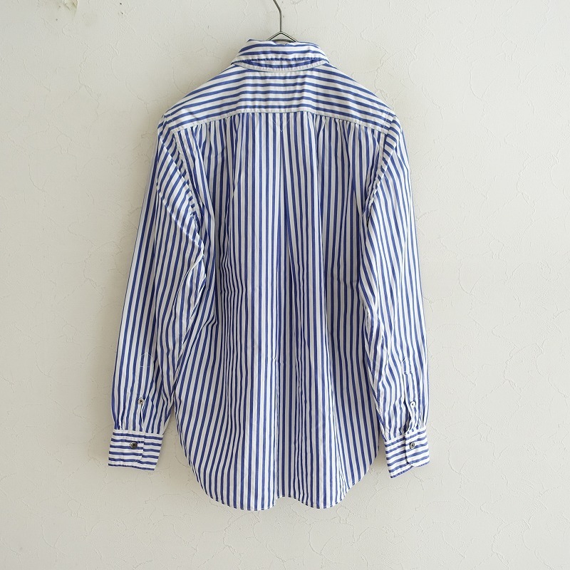 マイヨ maillot *コットンストライプシャツ*0绵Albini绀白バックギャザーブラウス丸襟长袖トップス(25-2508-296)【70I52】