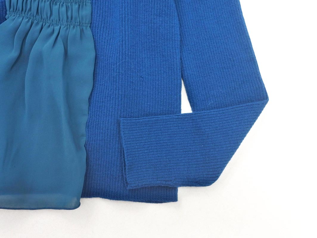 23区 ウール100% シフォン ギャザー ニット セーター size32/青 ◇■ ☆ fja6 レディース