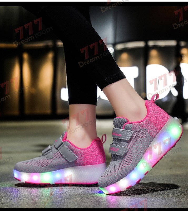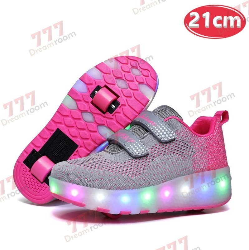 光る☆LED ライトアップスニーカー&ローラーシューズ 一体型 【K-375ピンク 21cm】夜间 スケート靴 反射材 ジョギング 自転车