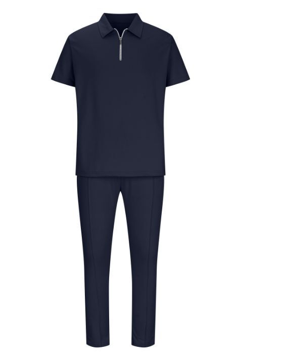 春服 ジャージセットアップ メンズ ポロシャツ セットアップ メンズ 长ズボン部屋着 POLOシャツ ネイビー L