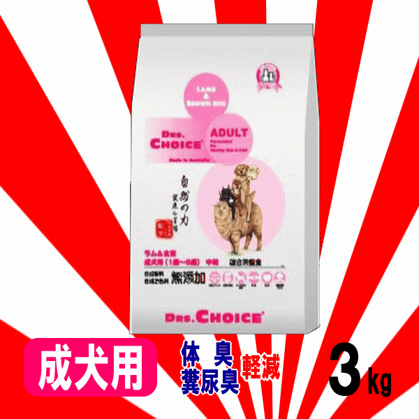 ■4888円~【DRS.CHOICE 成犬用】3kg 体臭・便・尿の軽减や整肠作用が人気の秘密 食べ易く消化しやすい円盘型の粒にもこだわりました…