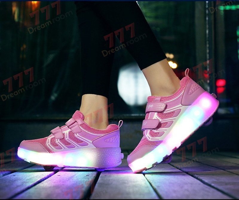 光る☆LED ライトアップスニーカー&ローラーシューズ 一体型 【K-373ピンク 23.5cm】夜间 スケート靴 反射材 ジョギング 自転车