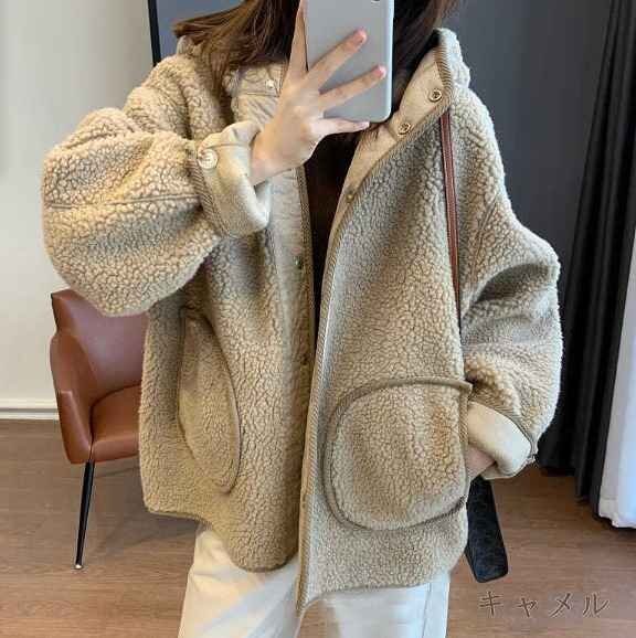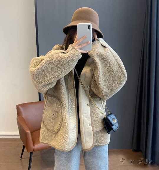 ファーコート 长袖アウター ジャケット 羽织 もこもこ かわいい カジュアル【大きいサイズあり】 L キャメル