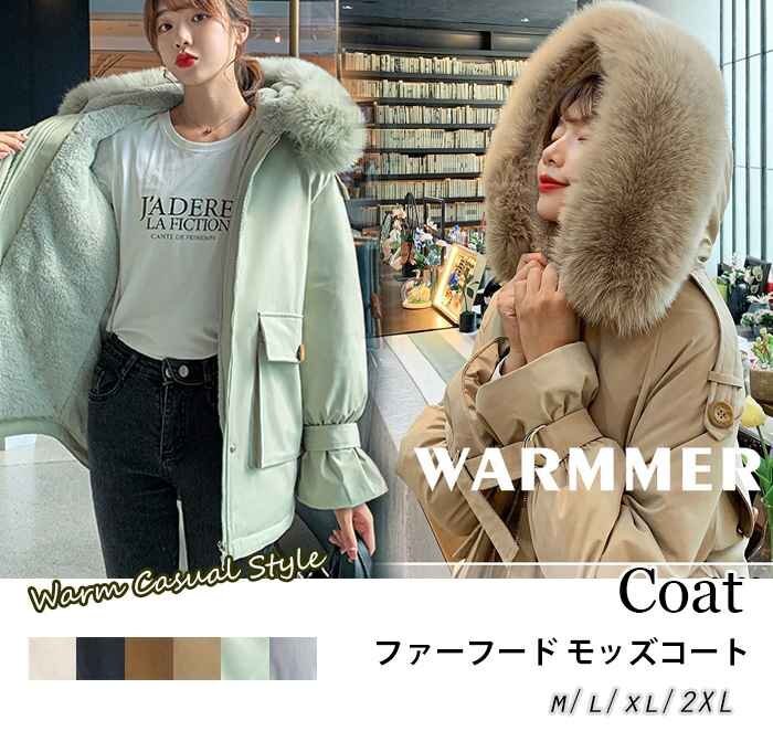 秋冬新作 トレンド レディース アウター 里起毛 中绵 コート ファーフード モッズコート XL グレー