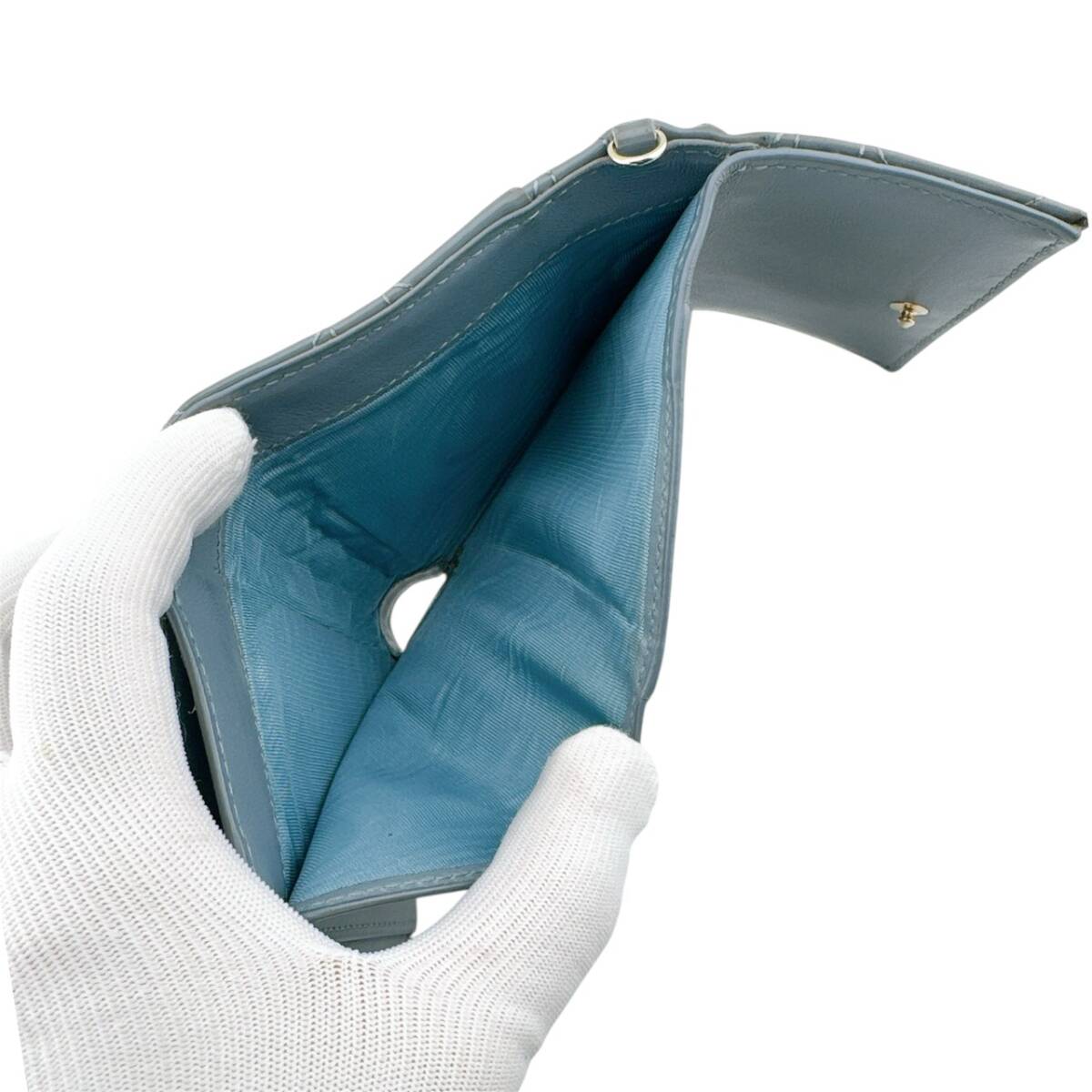 良品◇クリスチャンディオール エナメル カナージュ パテントレザー ロータスウォレット 三つ折り财布 ブルー系 レディース