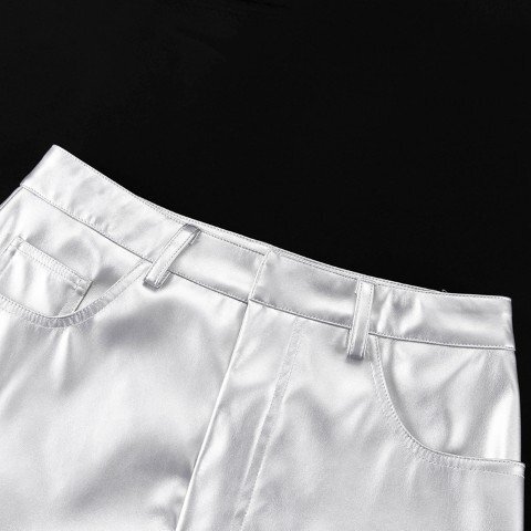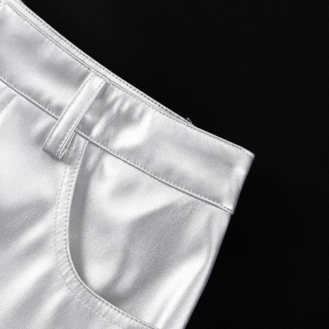 ロングスカート ハイウエスト PU スカート タイトスカート M シルバー