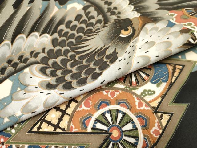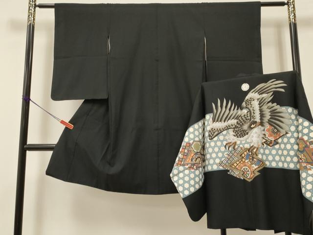 平和屋着物[]七五三 男の子 祝着・羽织セット 鹰 鹫 松皮菱源氏车花文 金彩 逸品 DAAW2844ma