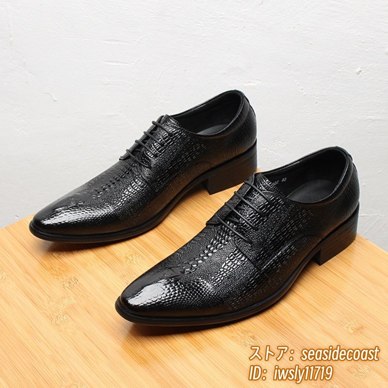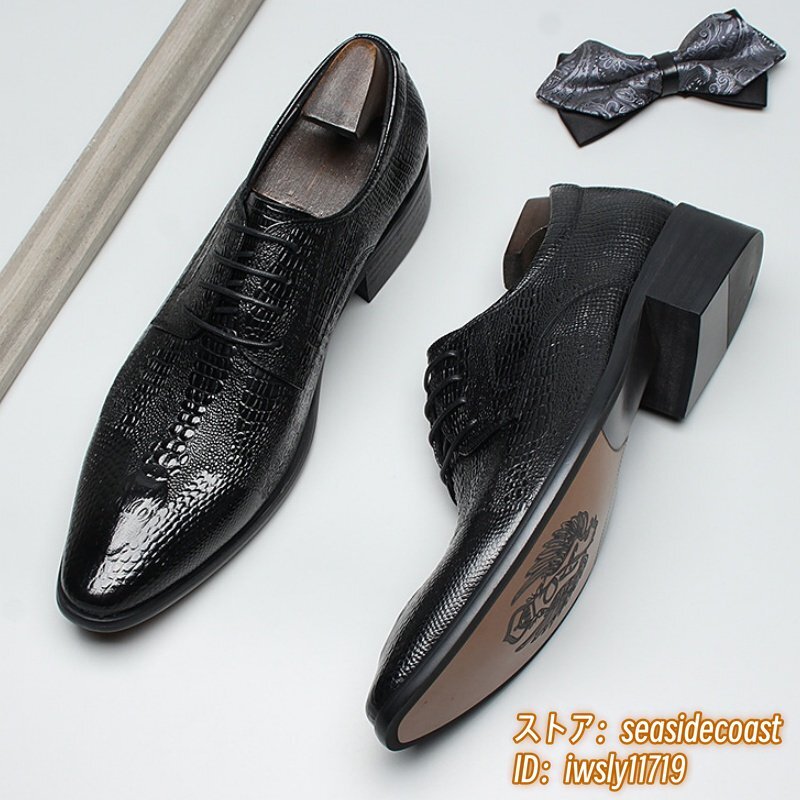 入手困难■本革 ビジネスシューズ 牛革 メンズ レザーシューズ クロコ柄 シンプル 革靴 鰐柄 超希少 职人手作り 绅士靴 ブラック 27.5cm