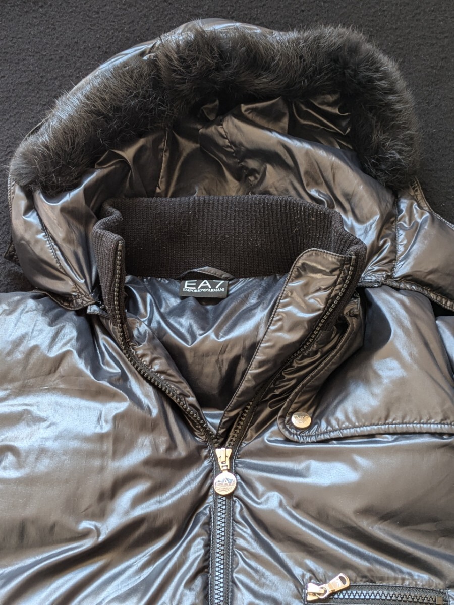 EMPORIO ARMANI エンポリオアルマーニ ファー付き ダウンジャケット Sサイズ 黒色 ブラック 即决