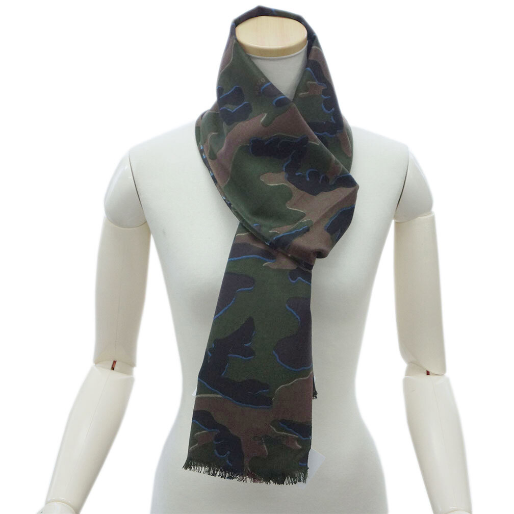 未使用 コーチ ストール F54190-NPK COACH メンズ ショール ライトウェイト カモ スカーフ ウール100% ダークグリーン ブルー 迷彩