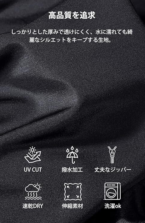 ラッシュガード メンズ 长袖 水着 [伸缩性・速干・接触冷感・UVカット] フルジップ スタンドカラー ラッシュパーカー UPF50+ SIZE L