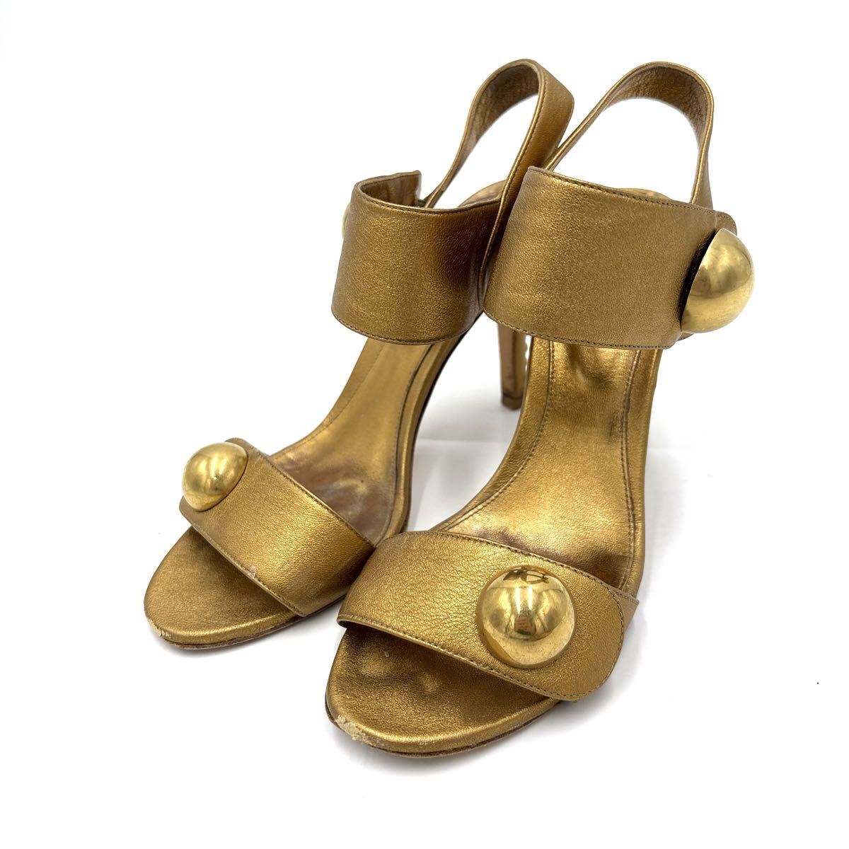 O ■ イタリア制 '洗练されたデザイン' sergio rossi セルジオロッシ ビジュー装饰 ヒール サンダル EU35.5 22.5cm レディース シューズ