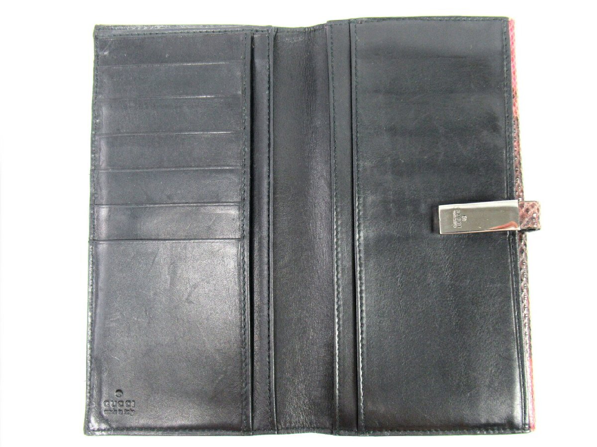 グッチ GUCCI 长财布 パイソン型押し ピンク ブラウン レディース 中古
