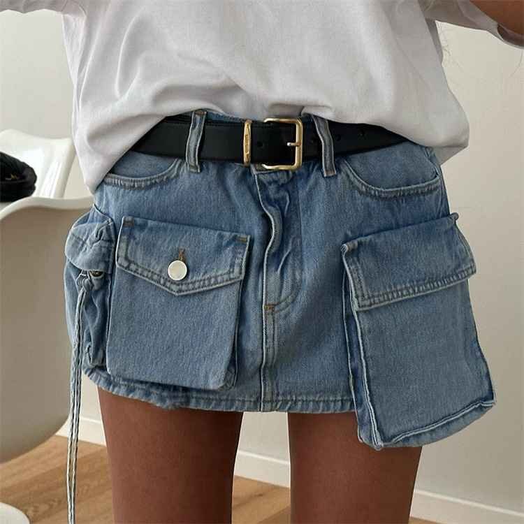 デニムハーフスカート ミニスカート ストリート系 レディース デニムスカート S ブルー