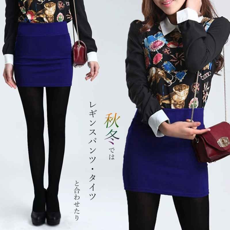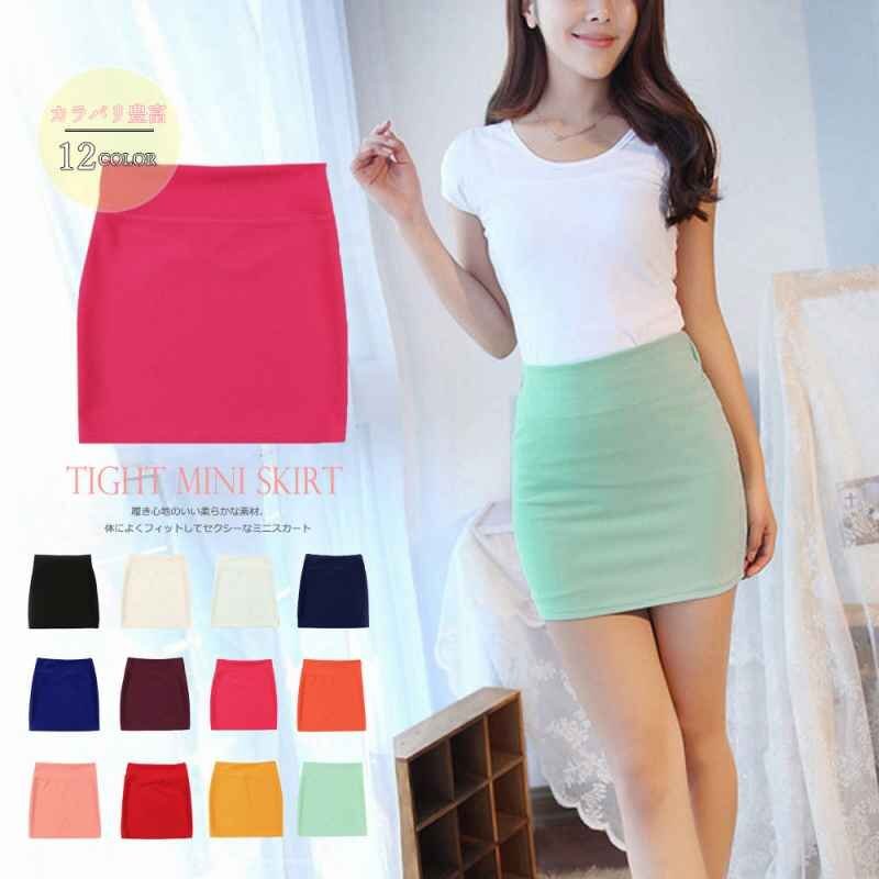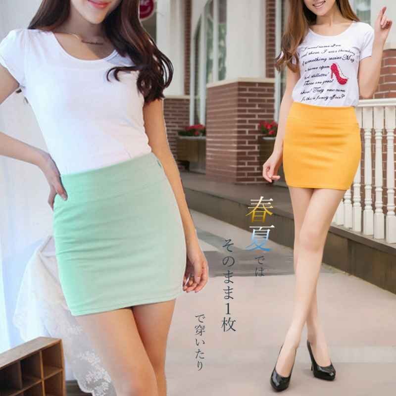 タイトスカート 无地 ミニスカート レディース セクシー ウエストゴム フリー オレンジ