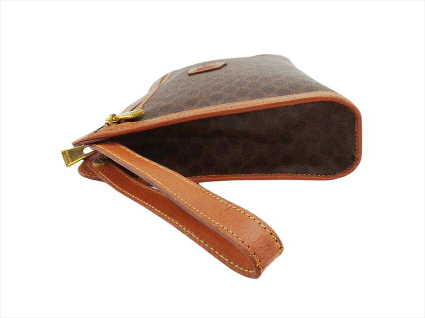 セリーヌ CELINE クラッチバッグ マカダム ブラウン ベージュ ゴールド レディース 中古