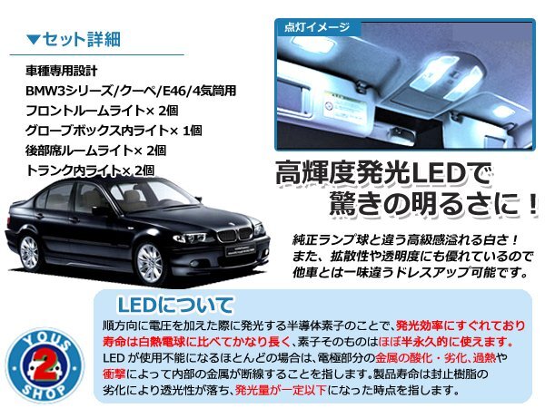 BMW 3シリーズクーペ E46 4気筒用 LEDルームランプセット 7P