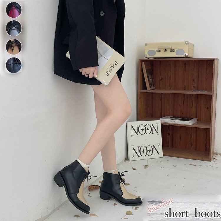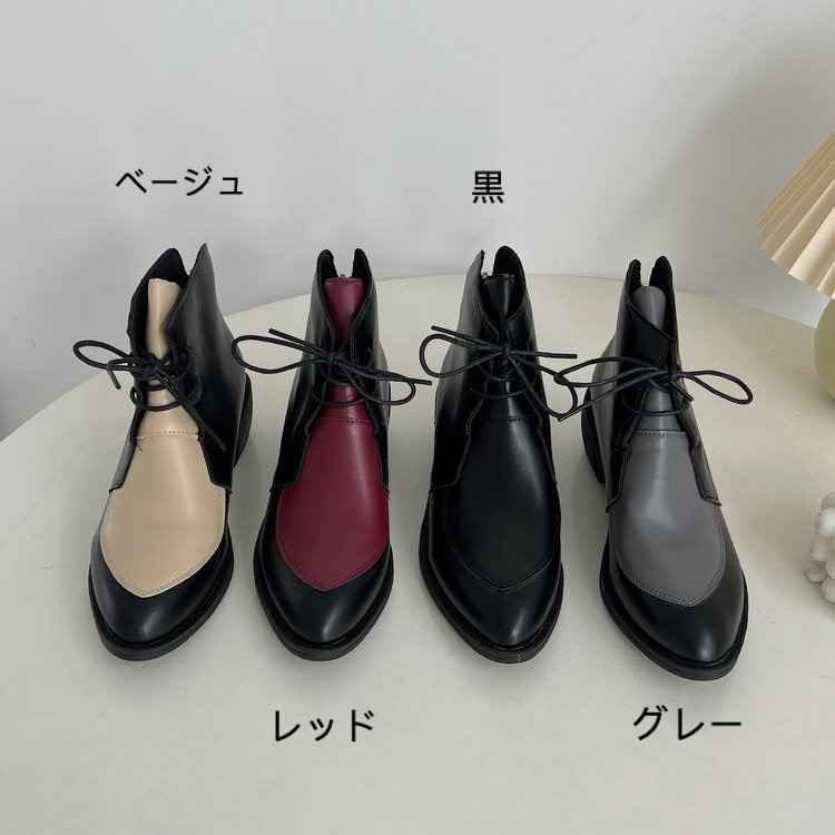 靴 ショートブーツ バイカラー スタイルアップ 耐摩耗性 オシャレ 36 ベージュ