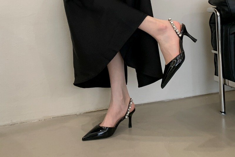 ハイヒールシューズ オフィス ピンヒール とんがりトゥ 无地 シンプル 【39】24~24.5cm ブラック