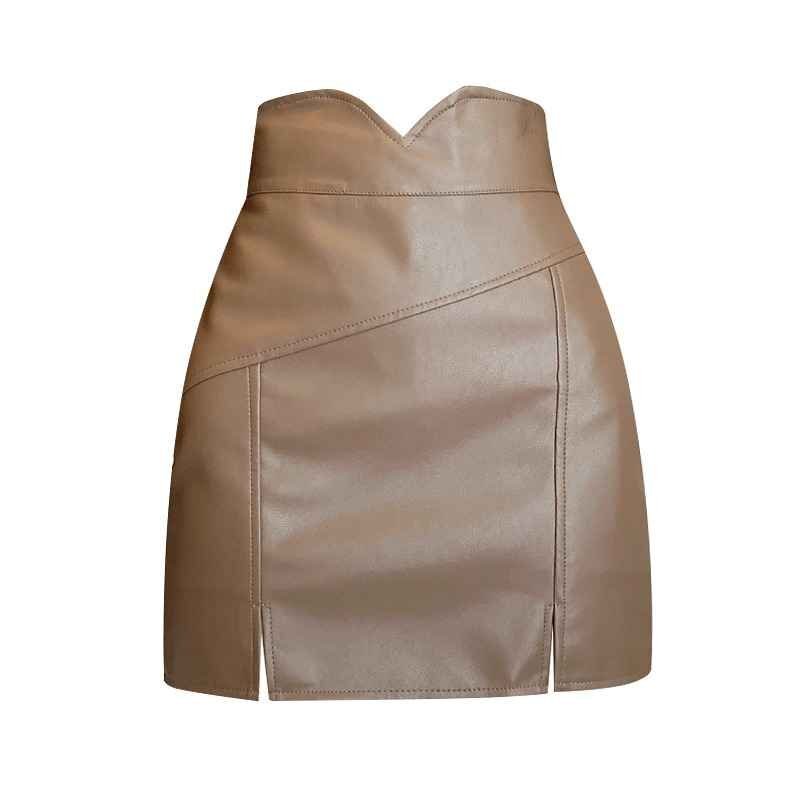 ミニスカート タイトスカート シンプル PUレザー かわいい カジュアル M ブラウン