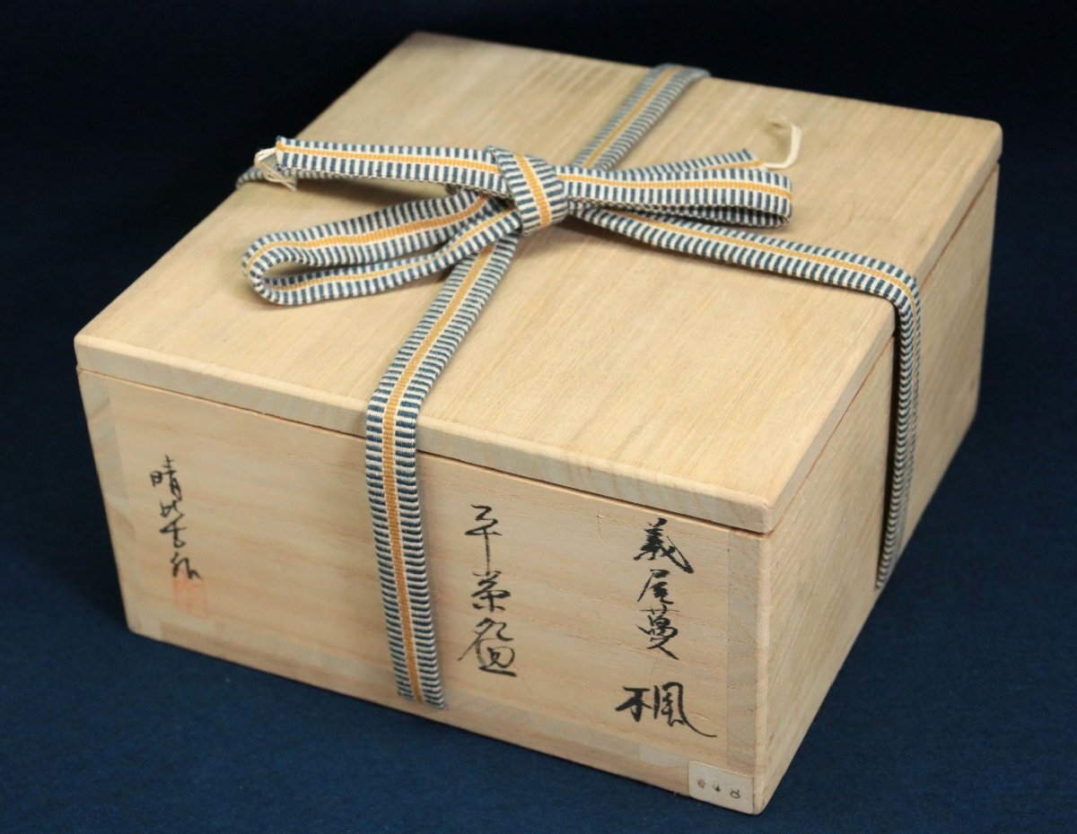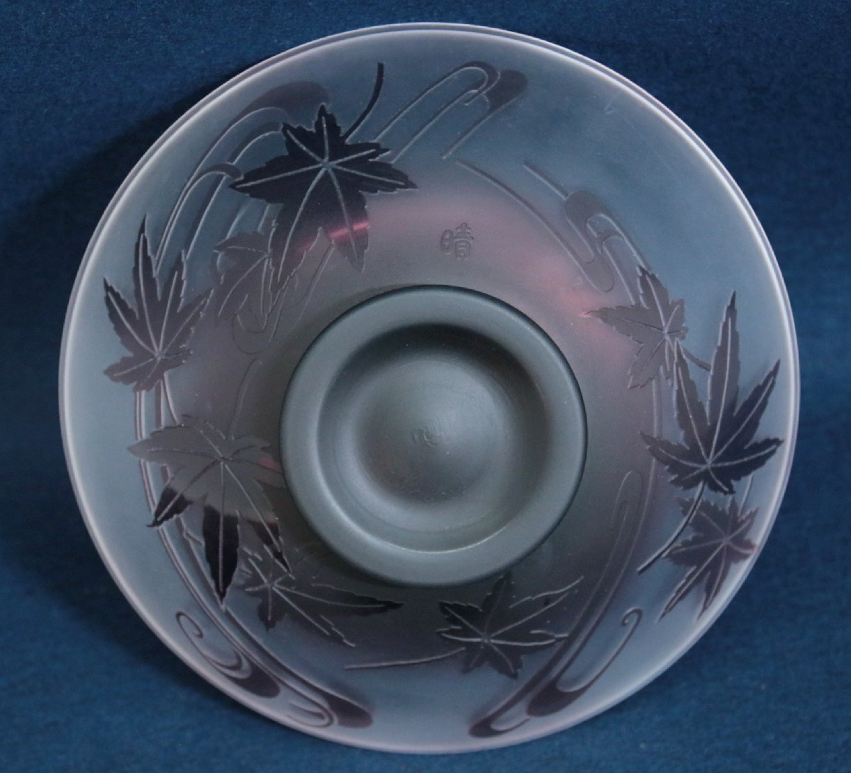 日本ガラス工芸协会会员 新仓晴比古 义屋蔓枫平茶碗 共箱 夏茶碗 茶道具 日本美术工芸品