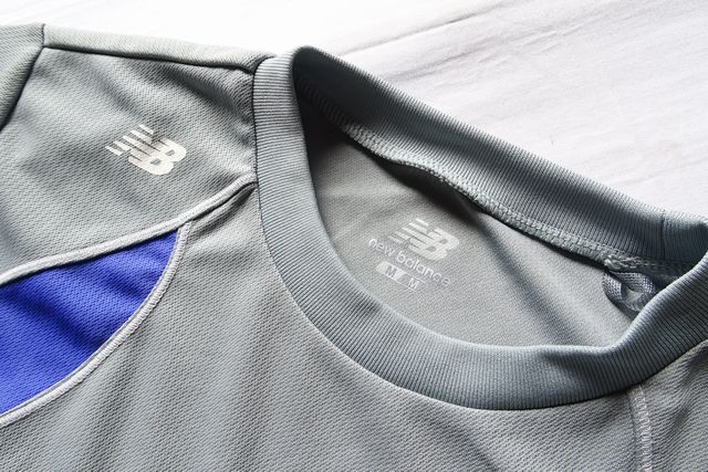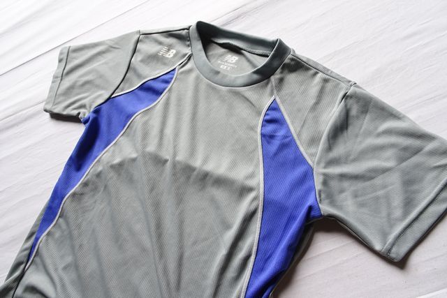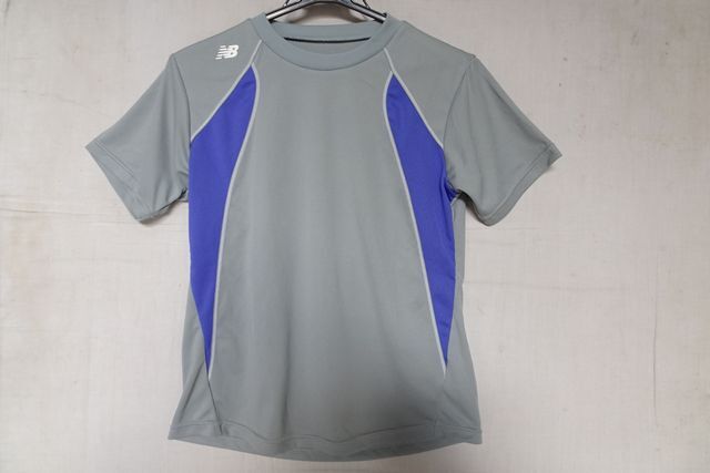 new balance/ニューバランス/半袖Tシャツ/速干性/クルーネック/袖脇紫切替配色/スポーツ/グレー/レディース/Mサイズ(9/18R7)