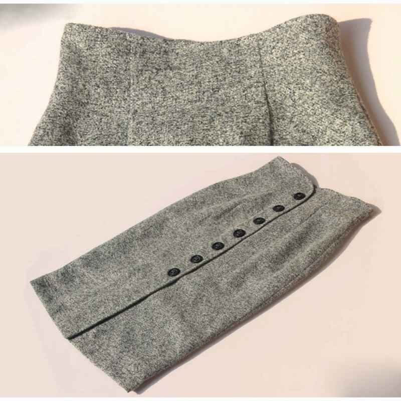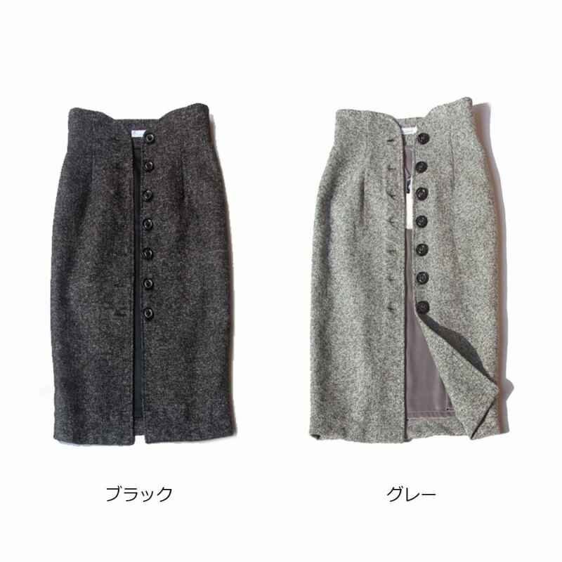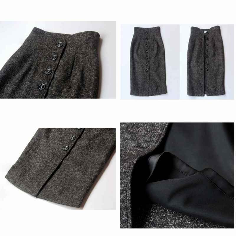レディース タイトスカート ひざ丈 ハイウエスト 秋冬 ツイード スカート S ブラック