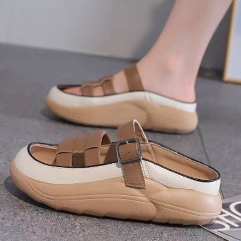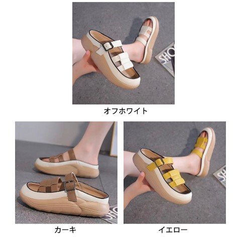 レディース オープントゥ シンプル 歩きやすい オフホワイト フラット ぺたんこ スリッパ 23.0cm(36) オフホワイト