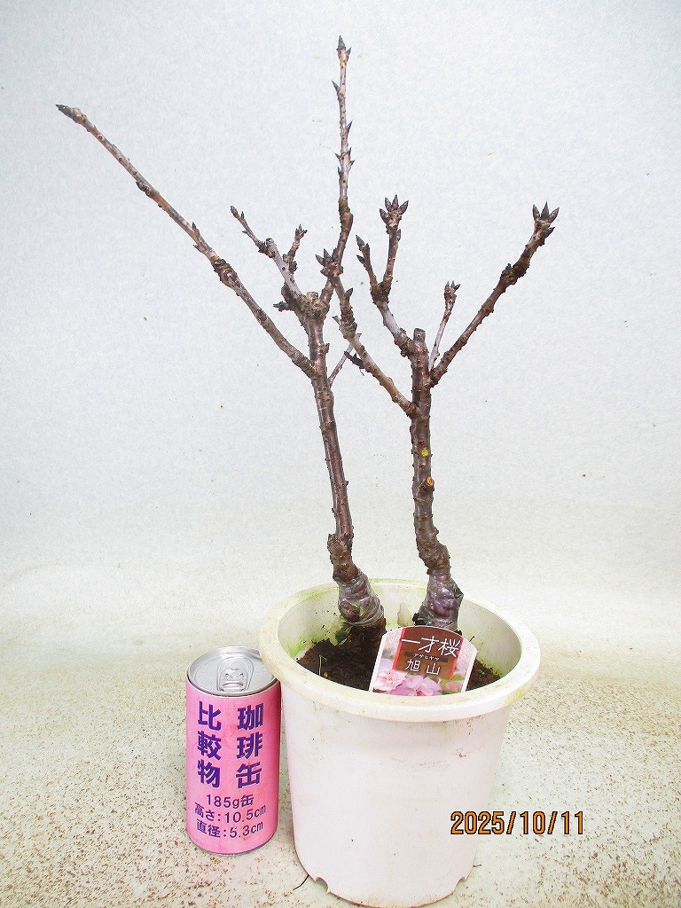 [緑の市场]旭山桜 2本立(101071白丸プラ鉢)全高:47㎝*同梱包対応「まとめて取引」厳守*100サイズ送料明记