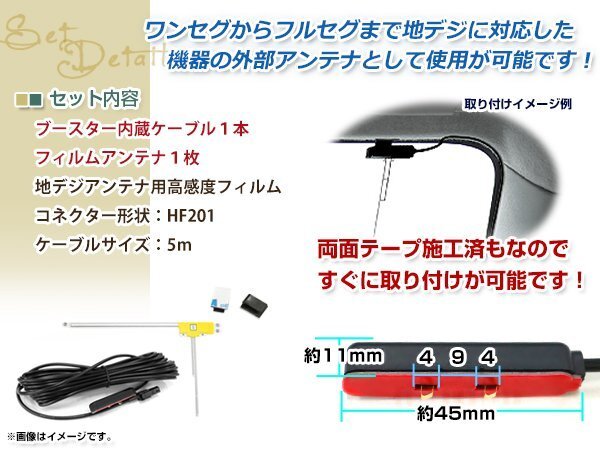 L型フィルムアンテナ 右1枚 地デジアンテナ用 ブースター内蔵型ケーブル 1本 ワンセグ フルセグ HF201 コネクター carrozzeria AVIC-ZH77