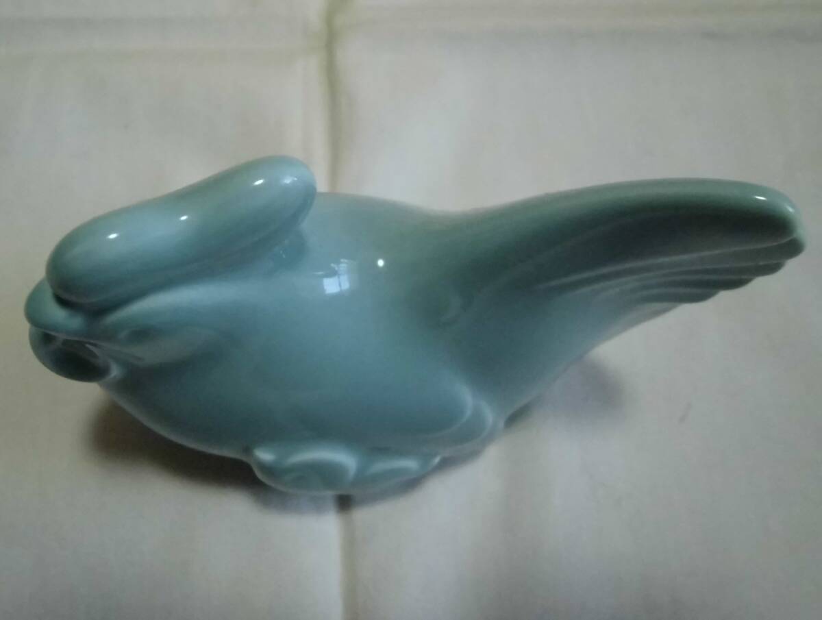 干支置物 酉 亲子 青磁 英胜作 饰り台付 鶏 にわとり 陶人形 土人形 招福 开运 縁起物 饰り物 陶器 オブジェ 工芸品 レトロ