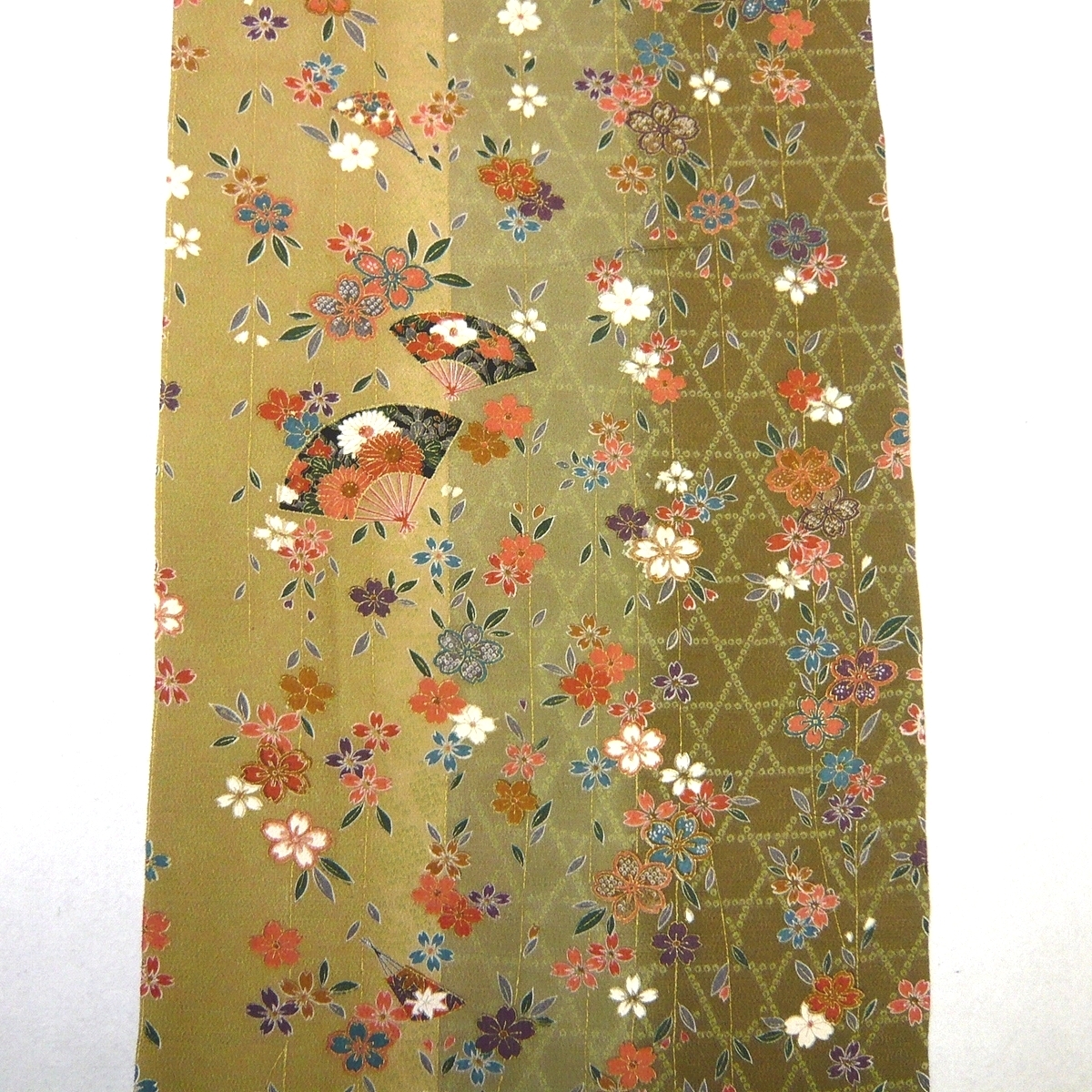 着物はぎれ 端切れ 正绢 ちりめん 缩缅 美品 笼目に桜 扇面に椿・菊など 100㎝ 手芸 细工 小物づくり