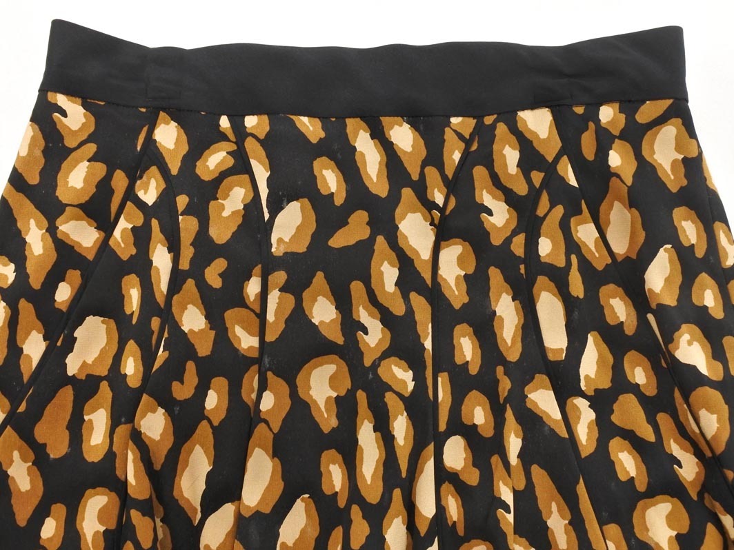 ネコポスOK DKNY ダナキャランニューヨーク シルク混 総柄 フレア スカート size2/黒 ■◇ ☆ fhb9 レディース