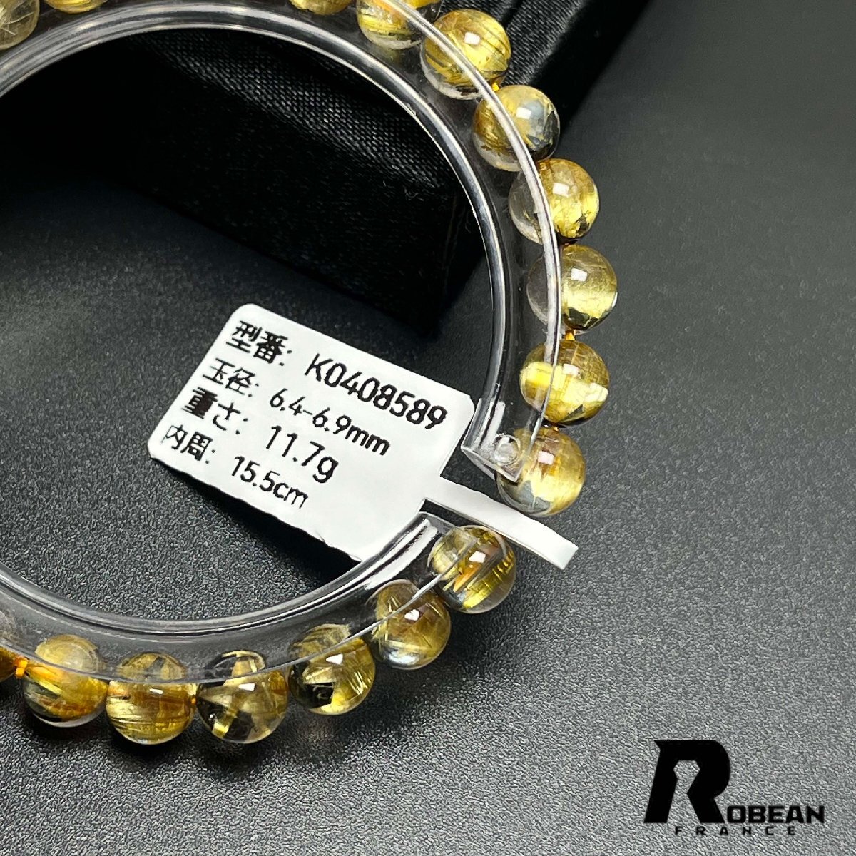 贵重 EU制 定価14万円★ROBEAN・太阳花タイチンルチル★黄金针水晶 金运 开运 ゴールド ブレスレット パワーストーン 6.4-6.9mm K0408589