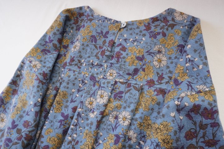 ハンドメイド♪cottonビエラ♪くすみブルー色地に花柄♪OP♪