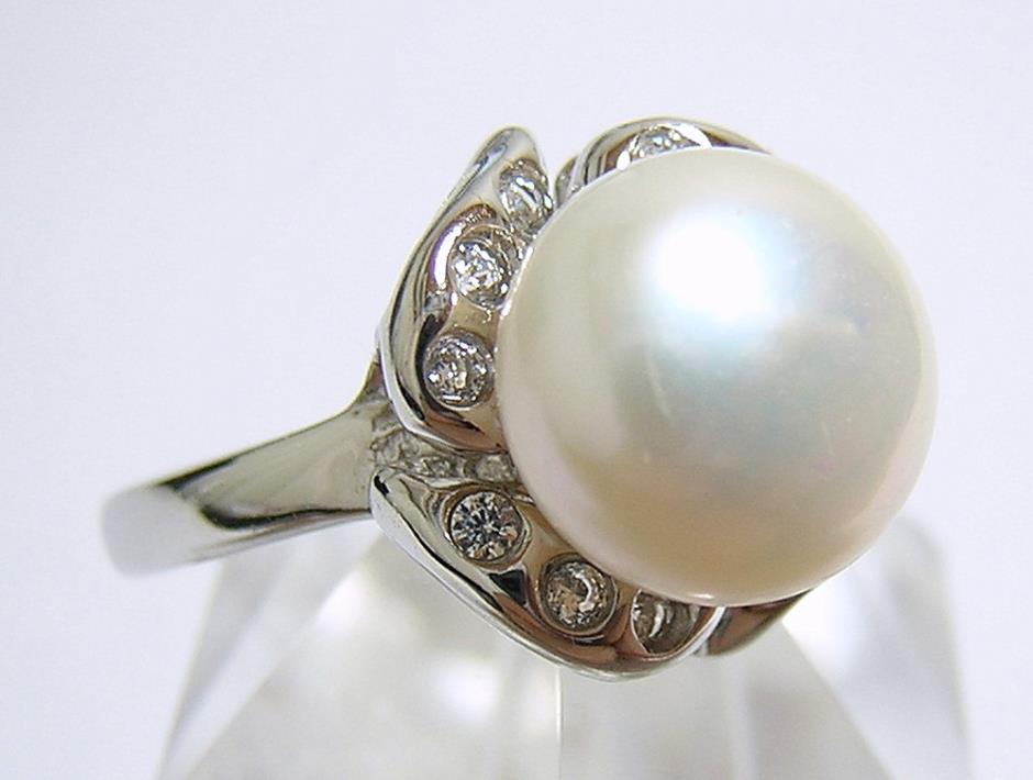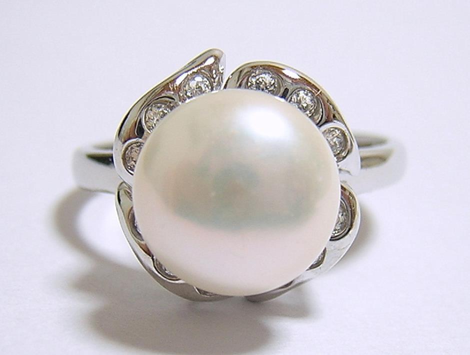 ボタンパール 真珠 デザインリング 指轮