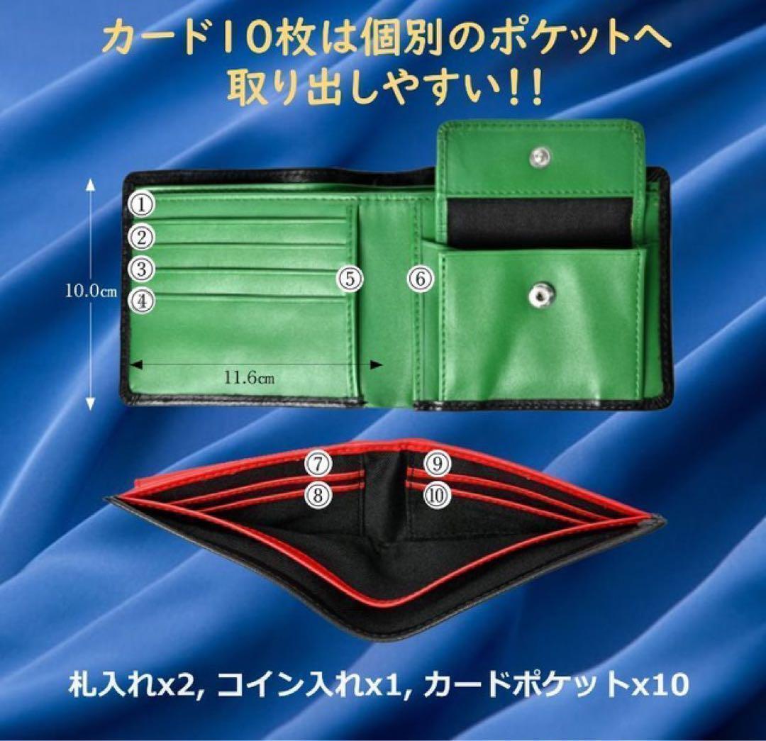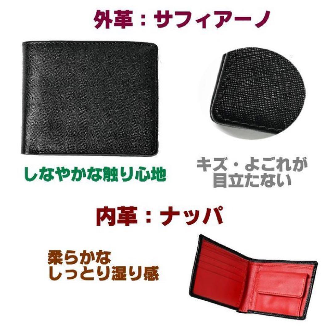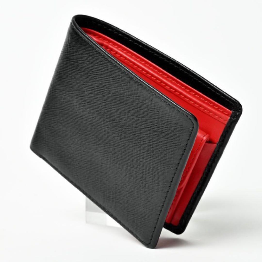 新品 未使用 高级本革 二つ折り财布 メンズ イタリアンレザー ブラック レッド