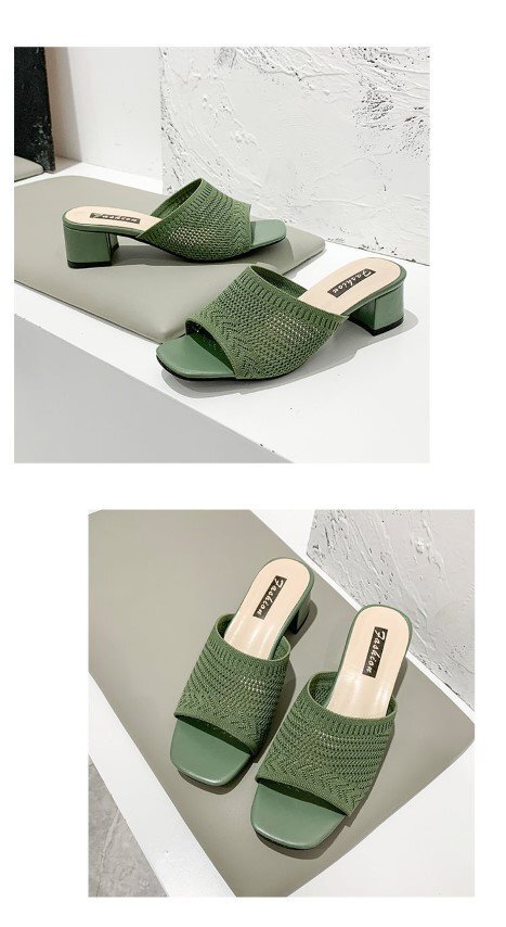 レディース サンダル スタイルアップ 美脚 脚长 幅広 オープントゥ チャンキーヒール 25.0cm(40) 黒