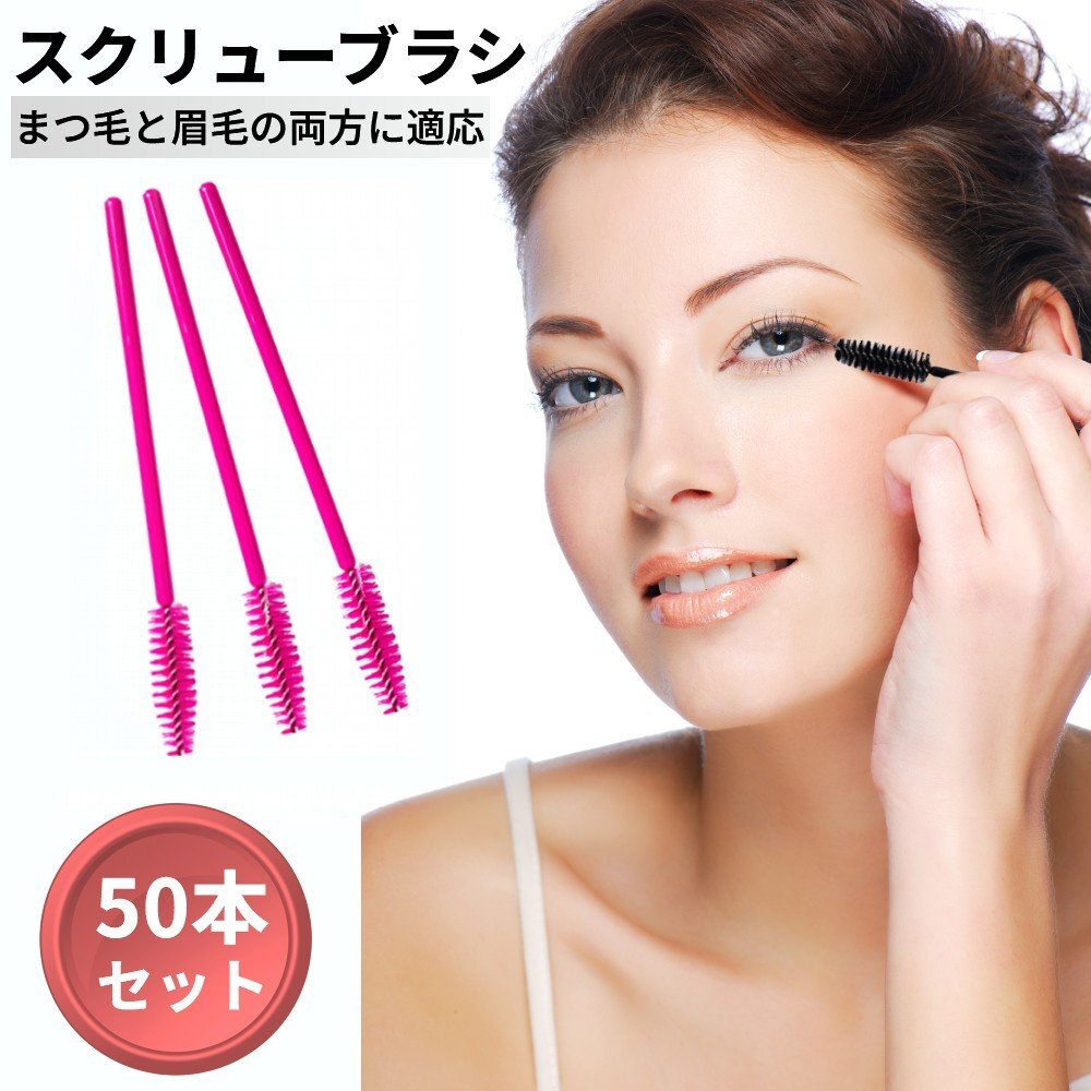 【vaps_6】使い捨て スクリューブラシ 50本 《ローズレッド》 眉毛 まつげブラシ 眉ブラシ まつ毛 エクステ アイラッシュ マスカラ 送込
