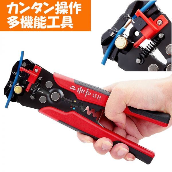 送料无料 ワイヤーストリッパー クリンパー 自动 オート マルチ 皮剥ぎ 10-24AWG 电工ペンチ (7)