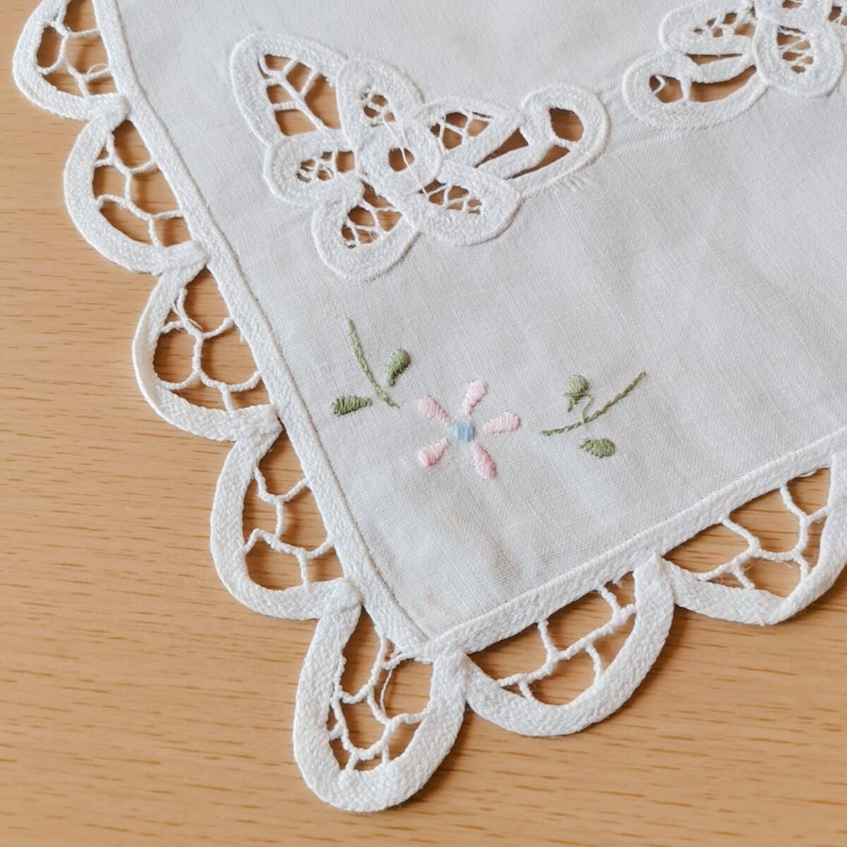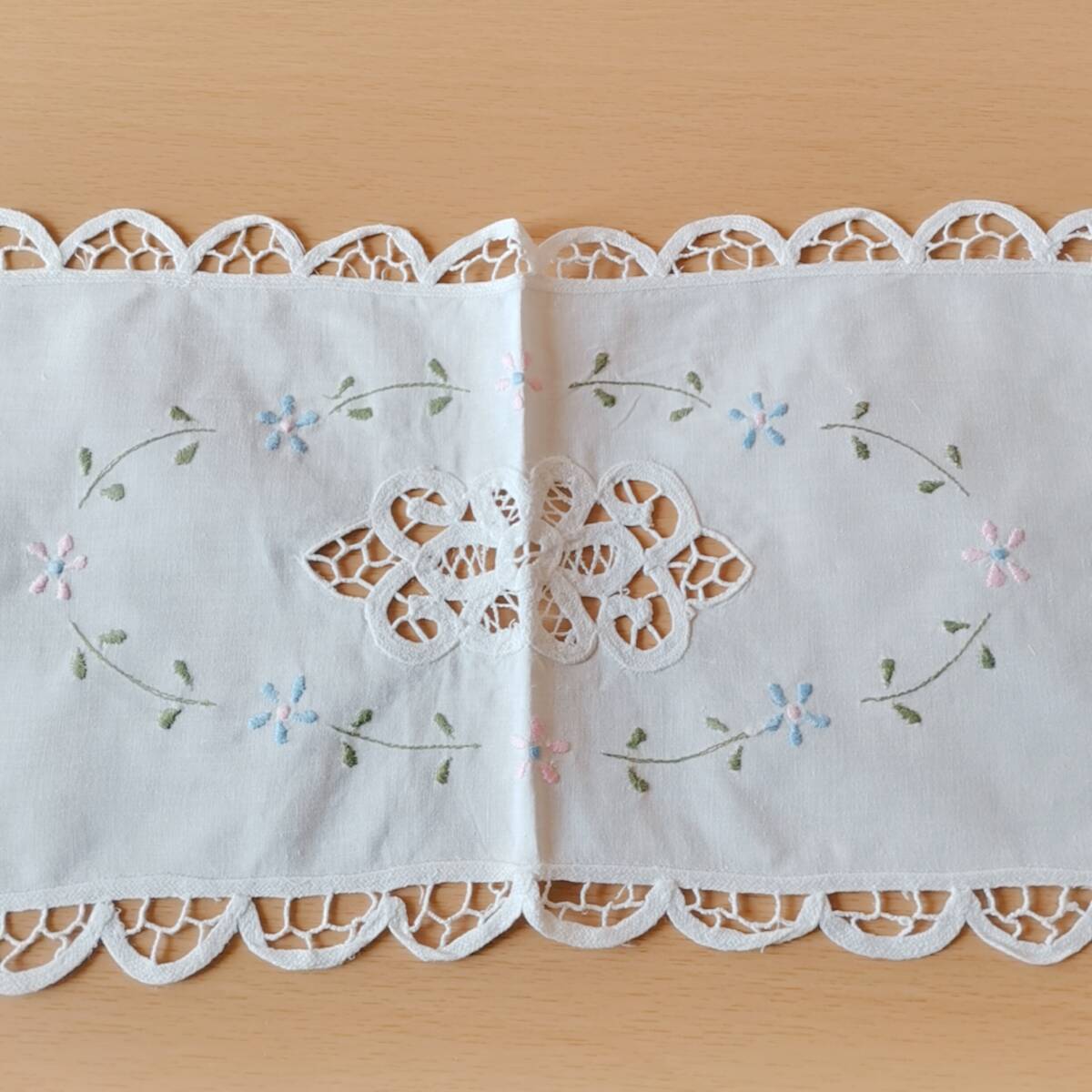 アンティークレース 刺繍 花柄 ホワイト色 マルチカバー 绵100 % テーブルクロス ハンドメイド