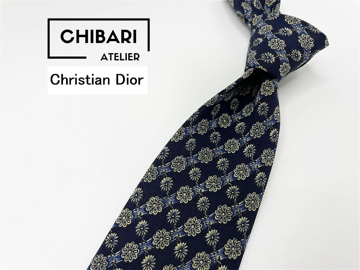 【美品】ChristianDior ディオール 花柄 ネクタイ 3本以上 送料无料 メンズ ネイビー 0804064
