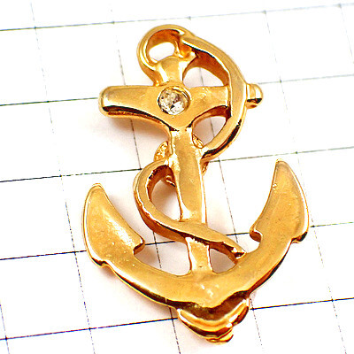 ピンバッジ・金色ゴールドのイカリ锚ラインストーン◆フランス限定ピンズ◆レアなヴィンテージものピンバッチ
