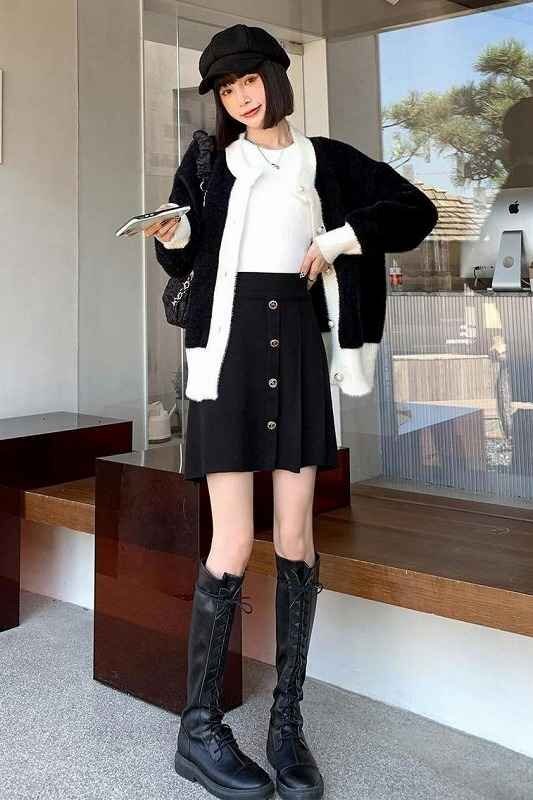ミニスカート ボトムス かわいい カジュアル シンプル 秋冬【大きいサイズあり】 XL ブラック