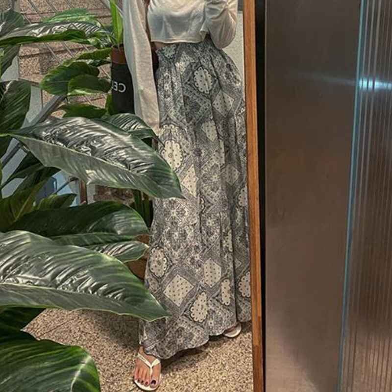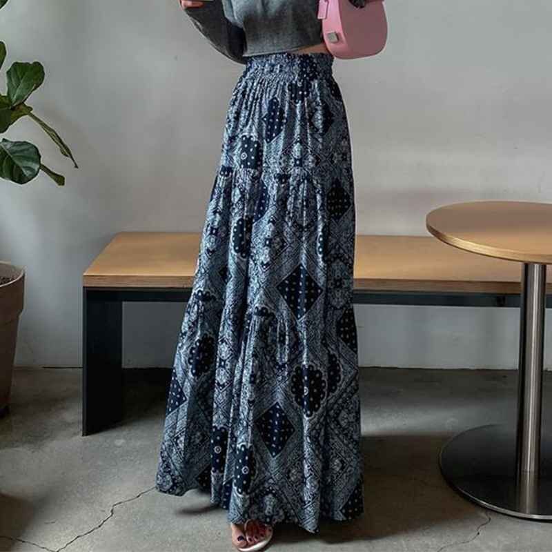 ロングスカート 民族风 レディース 韩国ファッション 春夏 ゆったり フリー ネイビー