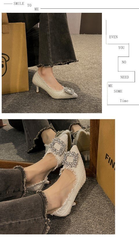 レディース パンプス ミュール 靴 ツイード ポインテッドトゥ ラインストーン 22.5cm(35) ホワイト