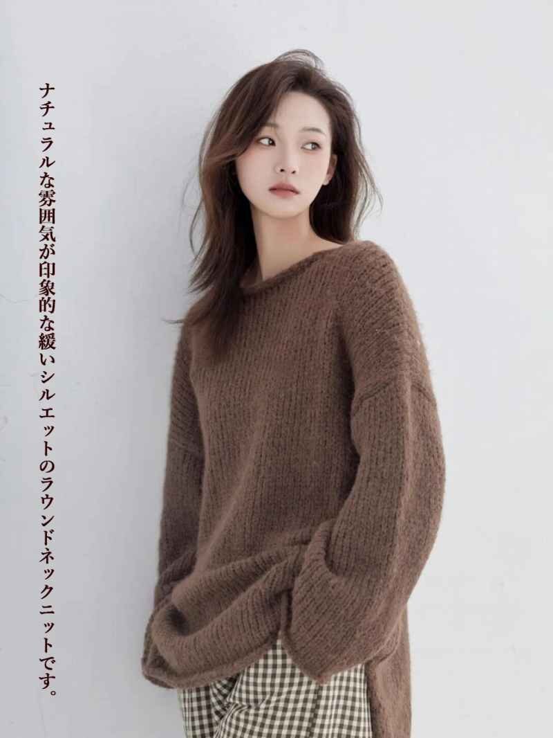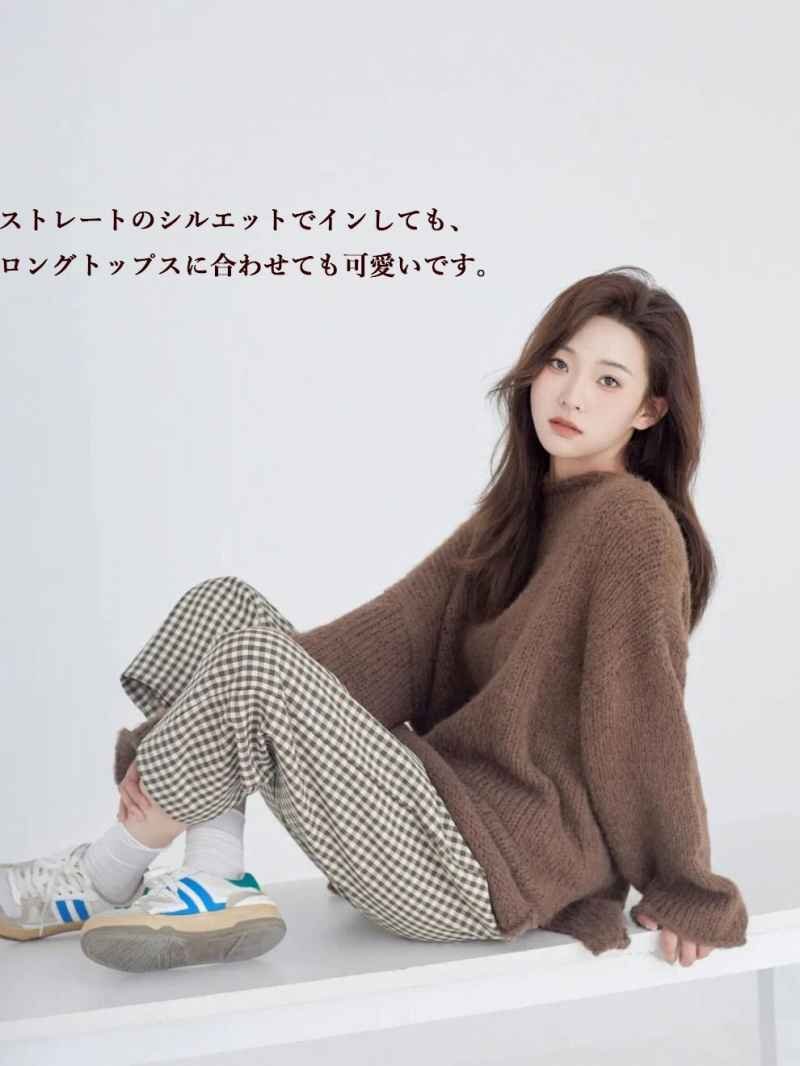 レディース ラウンドネックニット セーター チェックパンツ ストレートパンツ きれいめ 大人 スカート(Sサイズ) ワンカラー