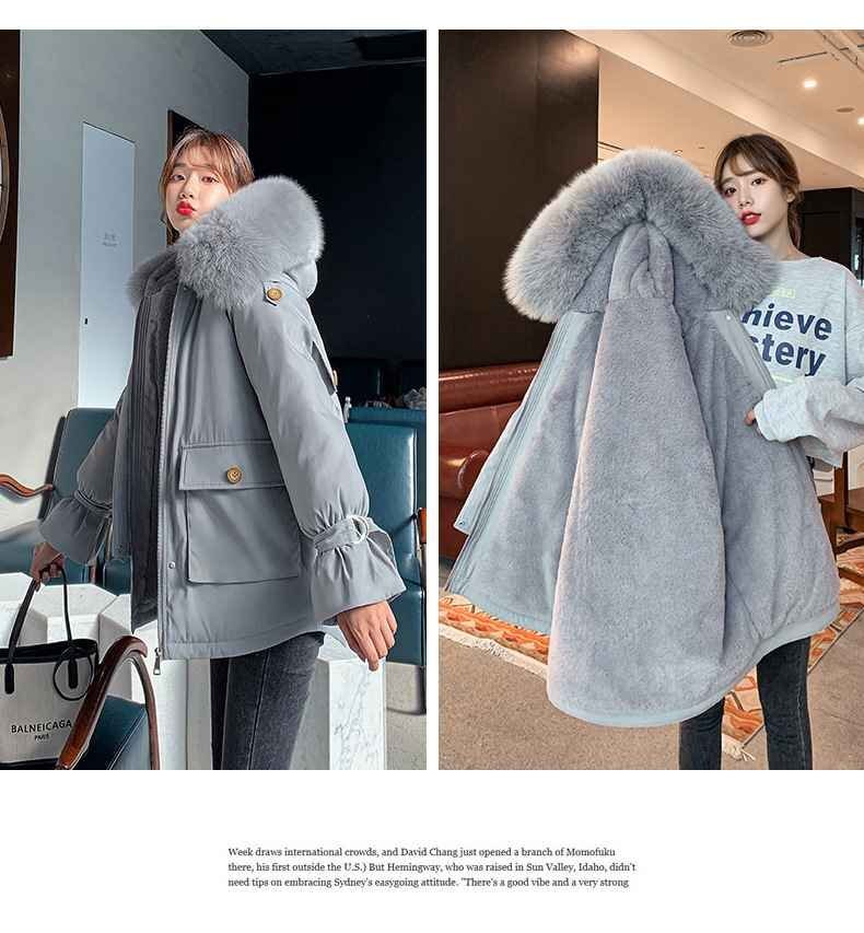 秋冬新作 トレンド レディース アウター 里起毛 中绵 コート ファーフード モッズコート XL ミント